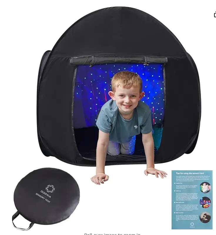 - Sensory-Friendly Lighting: Creating a sensory-friendly environment helps signal that it’s time to relax. I’ve added sensory lights in the room that emit a soft, calming glow. The lights are soothing and helping to ease the transition to bedtime.